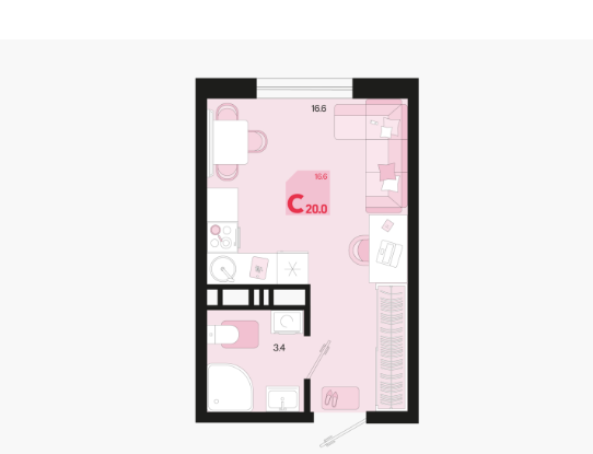 Продается Студия новостройка, 20 кв.м., 10/18 эт