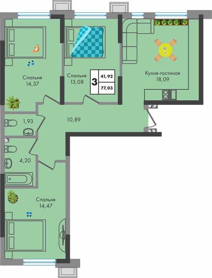 Продается 3-х комн. новостройка, 77 кв.м., 5/9 эт
