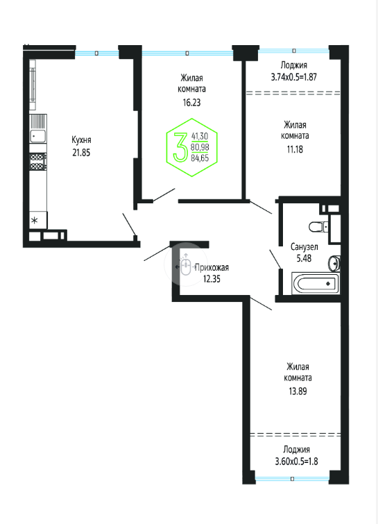 | Площадь, кв.м. | 84.65 |