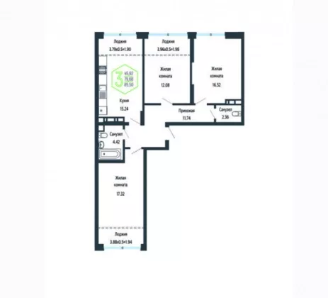 | Комнат в квартире | 3 |