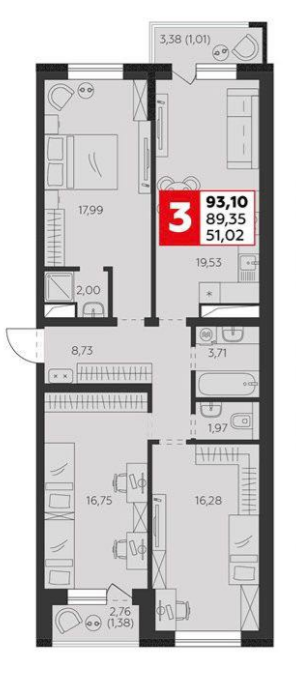 | Площадь, кв.м. | 93.1 |