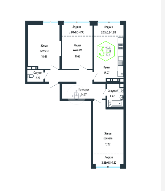 Продается 3-х комн. новостройка, 87.41 кв.м., 8/24 эт