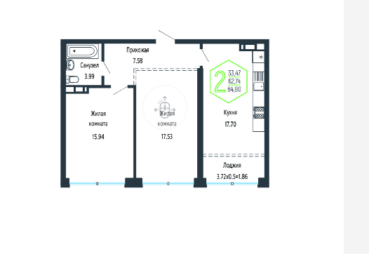 Продается 2-х комн. новостройка, 64.8 кв.м., 6/24 эт