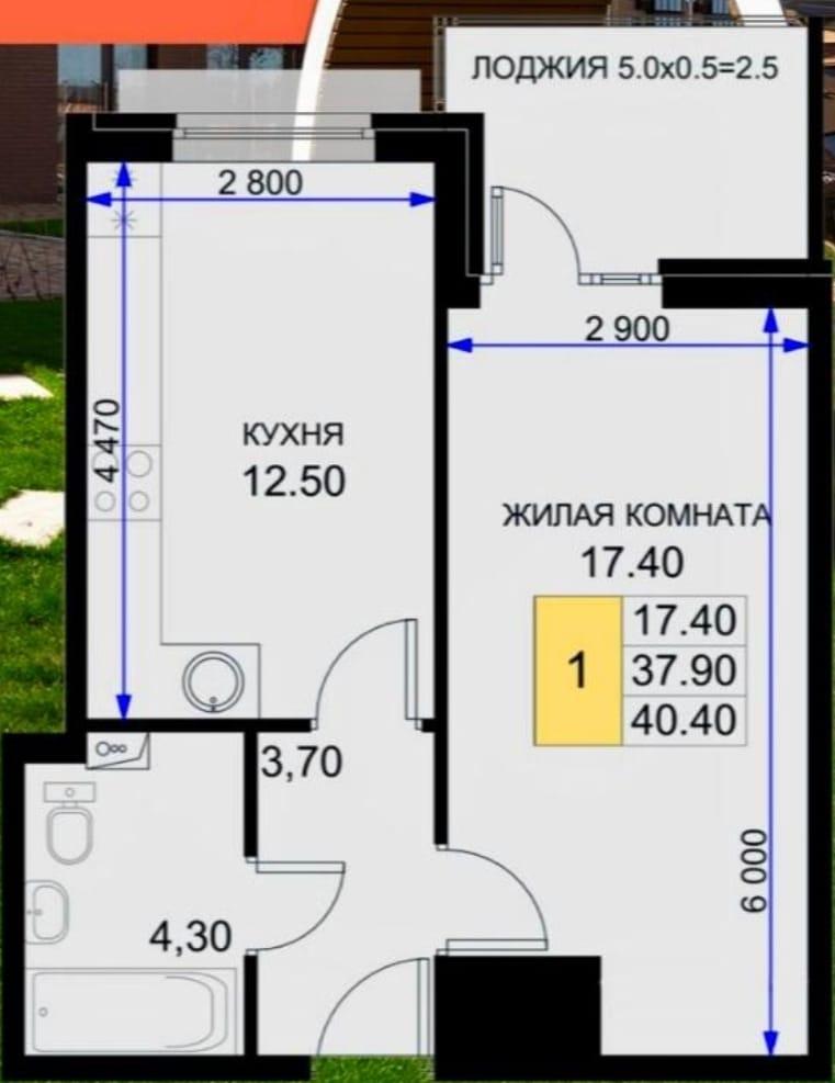 Продается однокомнатная новостройка, 40.5 кв.м., 5/7 эт