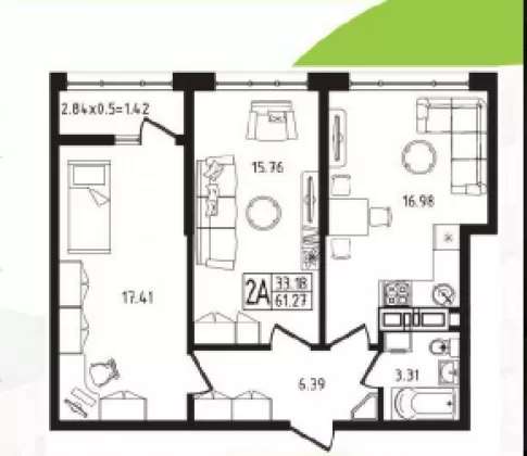Продается 2-х комн. новостройка, 61.27 кв.м., 3/8 эт