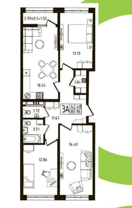Продается 3-х комн. новостройка, 80.96 кв.м., 3/8 эт
