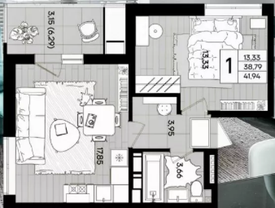Продается однокомнатная новостройка, 41.95 кв.м., 6/9 эт