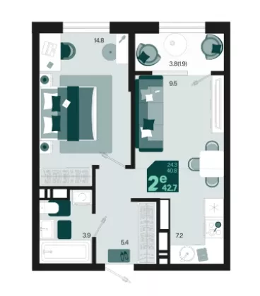 | Площадь, кв.м. | 42.7 |