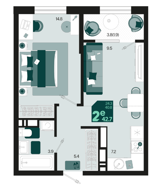 Продается однокомнатная новостройка, 43 кв.м., 9/18 эт