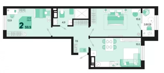 | Площадь кухни, кв.м. | 15.5 |