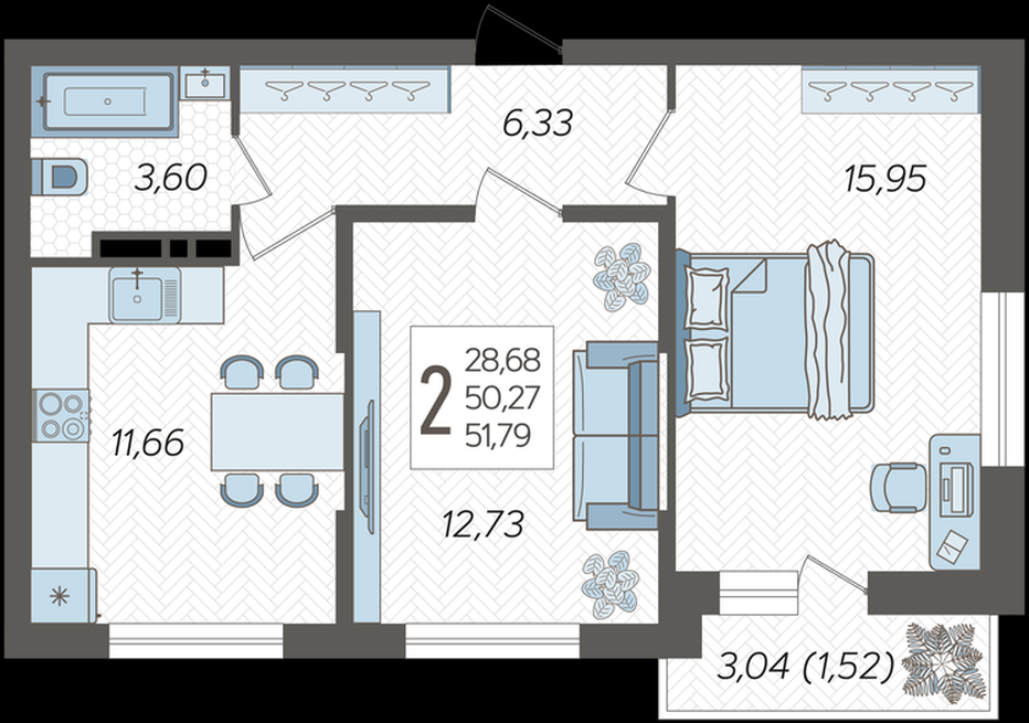 Продается 2-х комн. новостройка, 52 кв.м., 13/19 эт