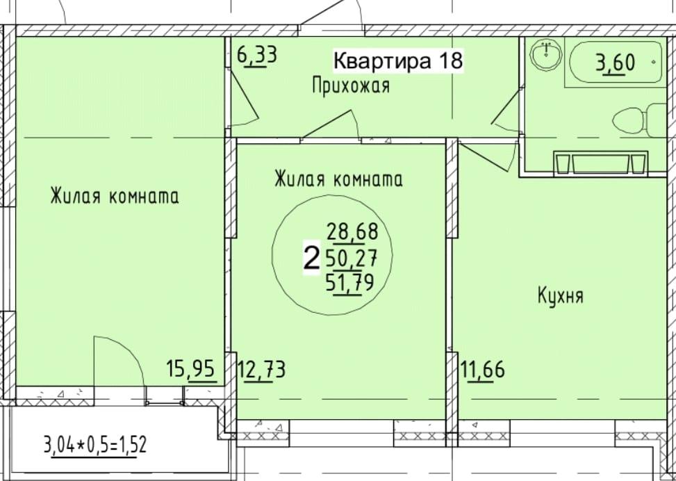 Продается 2-х комн. новостройка, 52 кв.м., 11/12 эт