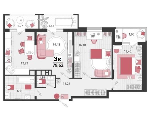 Продается 3-х комн. новостройка, 79.6 кв.м., 3/9 эт