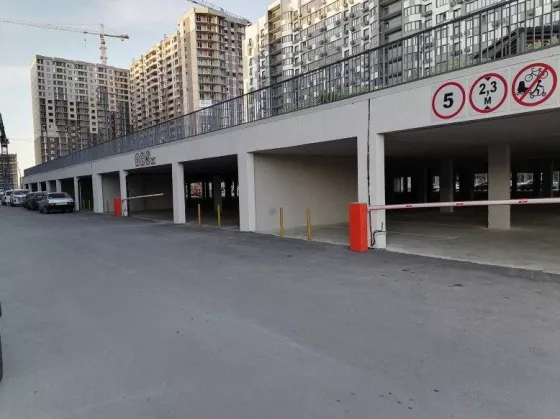 На стилобате безопасная детская площадка. Крытая парковка и гостевые парковочные места