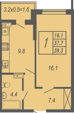 Продается однокомнатная новостройка, 39 кв.м., 10/19 эт