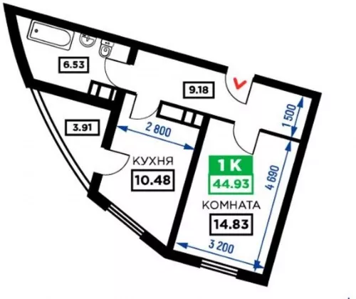 Продается однокомнатная новостройка, 45 кв.м., 22/24 эт