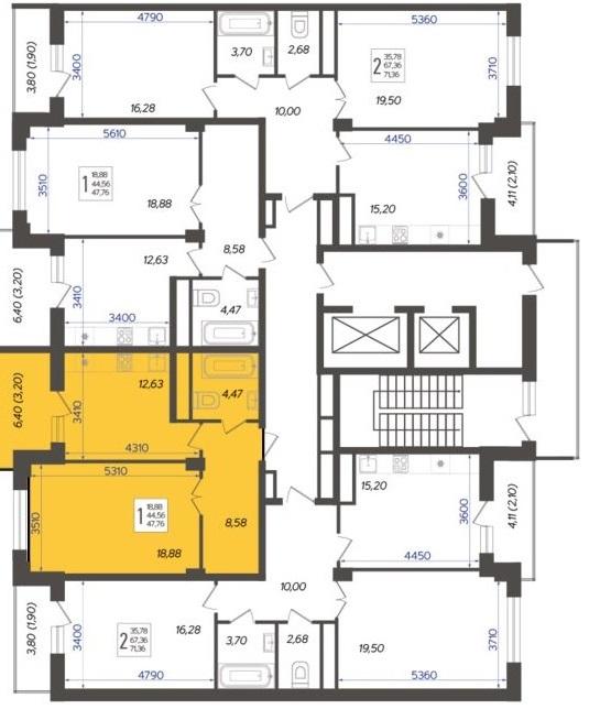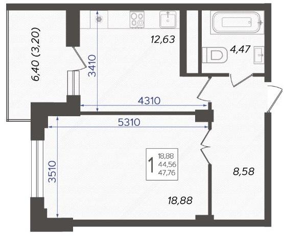 Продается однокомнатная новостройка, 48 кв.м., 2/22 эт