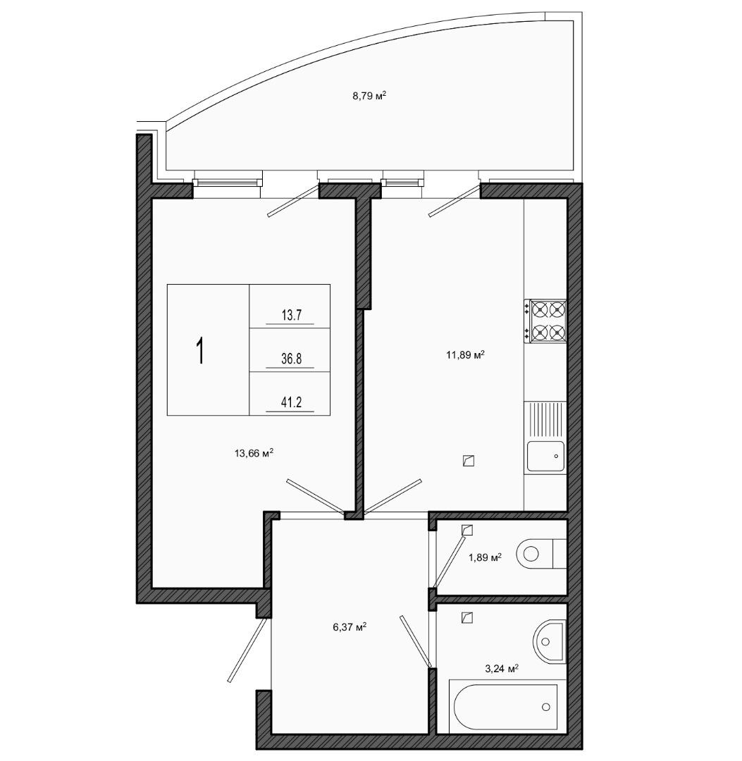 Продается однокомнатная новостройка, 45 кв.м., 8/19 эт