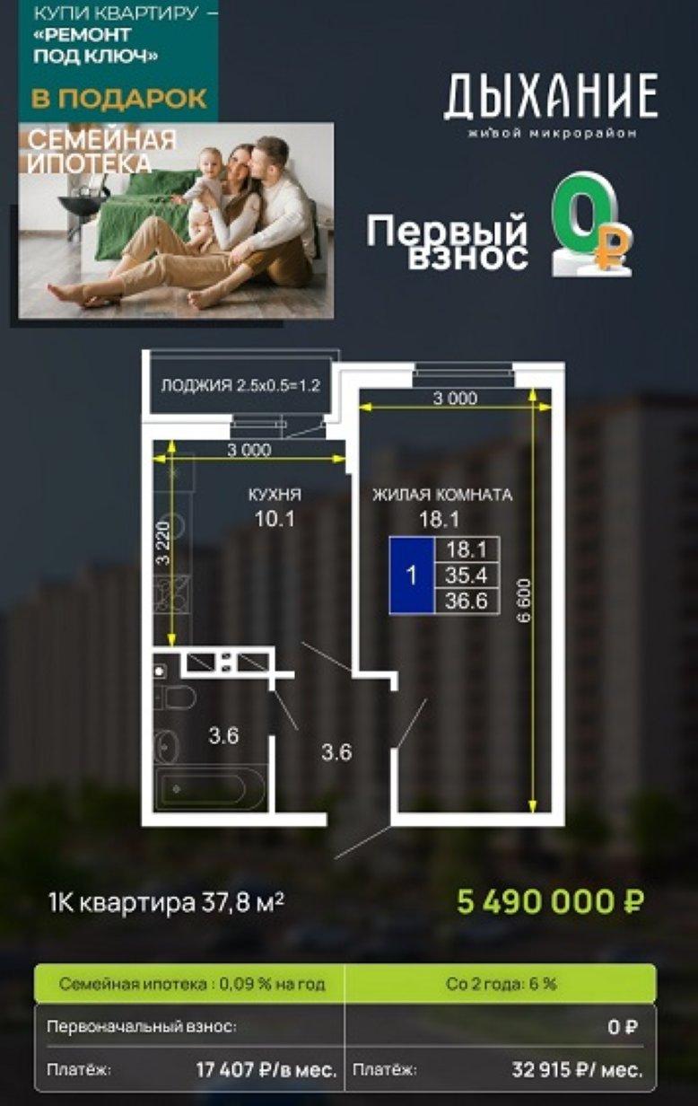 Продается однокомнатная новостройка, 36.6 кв.м., 14/16 эт
