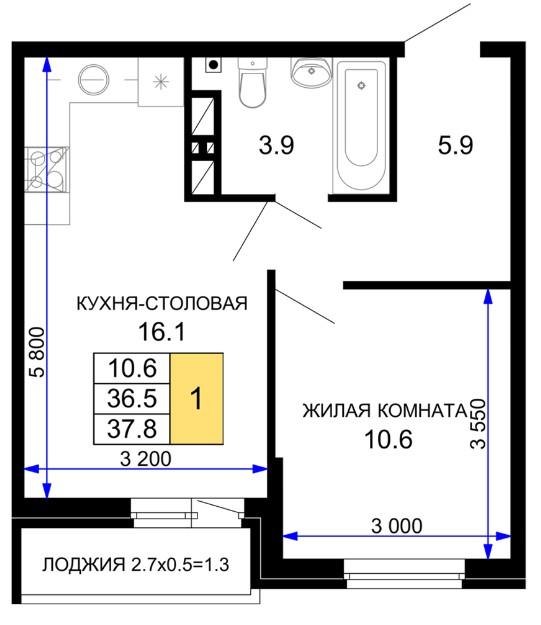 | Площадь, кв.м. | 37.8 |