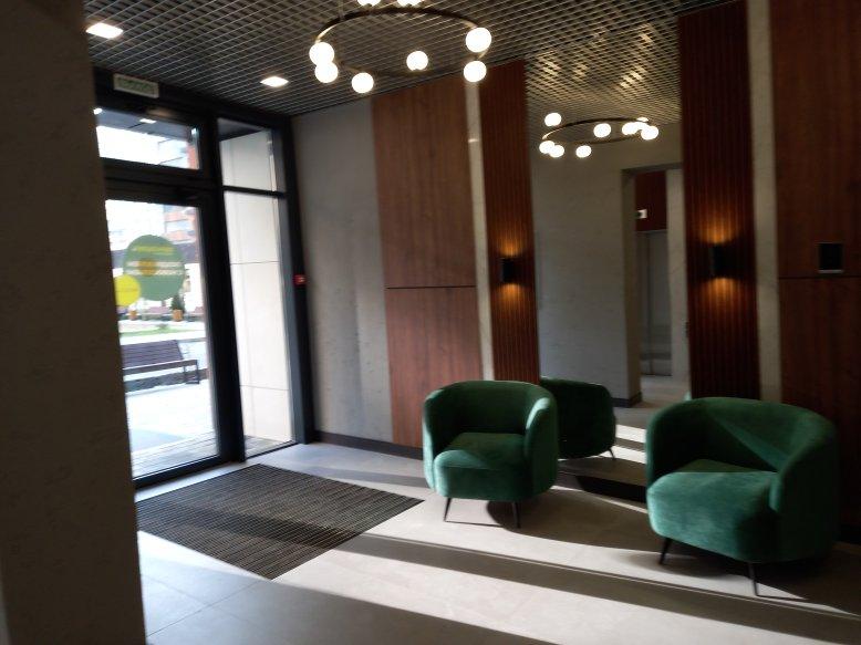 В доме три лифта, светлые холлы, дизайнерский ремонт, колясочные и боксы для велосипедов, удобная навигация, консьерж-сервис, круглосуточное видеонаблюдение.