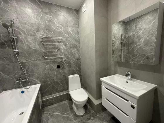 Парк, своё озеро с набережной и ресторанами с видом на воду. Благоустроена территория возле дома, удобные детские площадки для детей разного возраста.