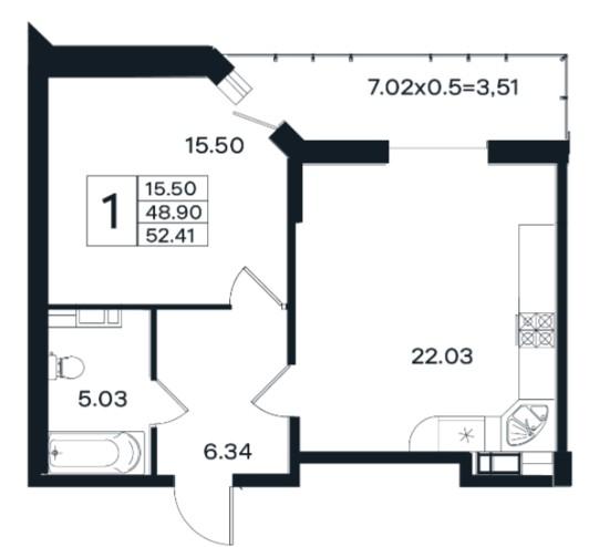 В избранное Однокомнатная с большой кухней