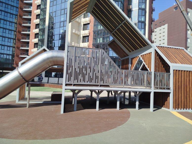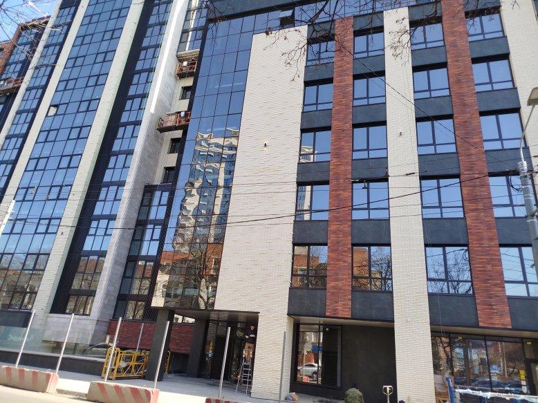 Коммерческие блоки занимают нулевые этажи. На территории двора расположено семиэтажное здание под офисы и торговые площади.