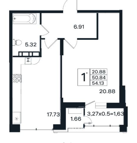 Продается однокомнатная новостройка, 54.6 кв.м., 10/11 эт