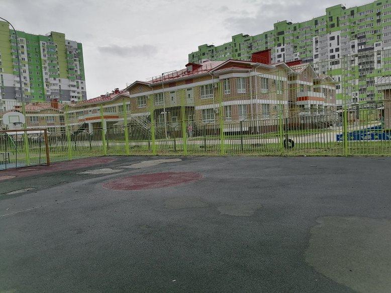 Большое расстояние между домами, много места для парковки автомобилей, также есть многоуровневая стоянка. Двор с красочными детскими и спортивными площадками , скамейками для отдыха и зелеными кустарниками и деревьями.