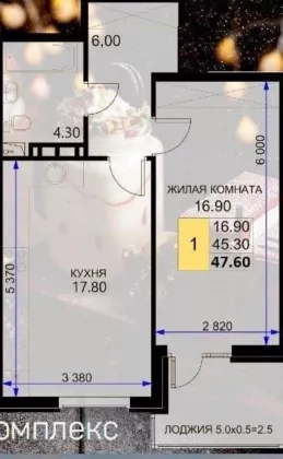 Продается однокомнатная новостройка, 47.6 кв.м., 6/7 эт