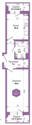 Продается однокомнатная новостройка, 43.9 кв.м., 21/21 эт