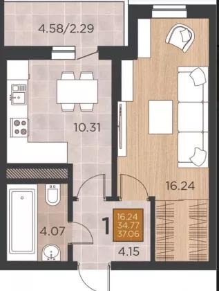 | Площадь, кв.м. | 37.5 |