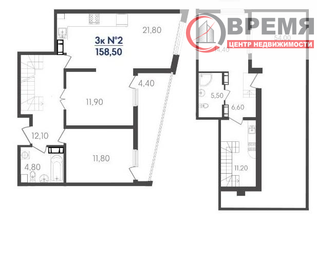 Трехкомнатный пентхаус в двух уровнях с видом на город.
