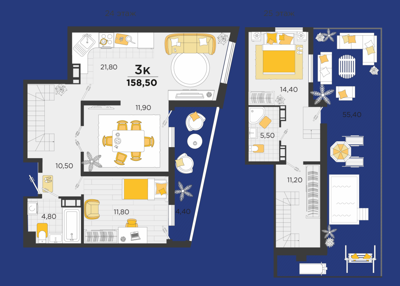 Двухэтажный роскошный пентхаус с террасой в доме бизнес класса. Окна выходят на три стороны, открывая потрясающие виды на на город и его окрестности. Владельцы пентхауса будут иметь выход на террасу, которую можно рассматривать как персональную смотровую площадку, балконы и терраса огибают весь периметр квартиры. Панорамное остекление. Тщательно продуманная планировка с просторными светлыми комнатами, безшумные лифты, парадные с дизайнерской отделкой. Огороженная охраняемая территория с ландшафтным дизайном и тематическими детскими площадками, подземный паркинг, подстанция для зарядки электромобилей. Престижная локация жилого комплекса позволит удобно выезжать за город, минуя пробки, быстро добираться до крупных торговых центров, и международного аэропорта.