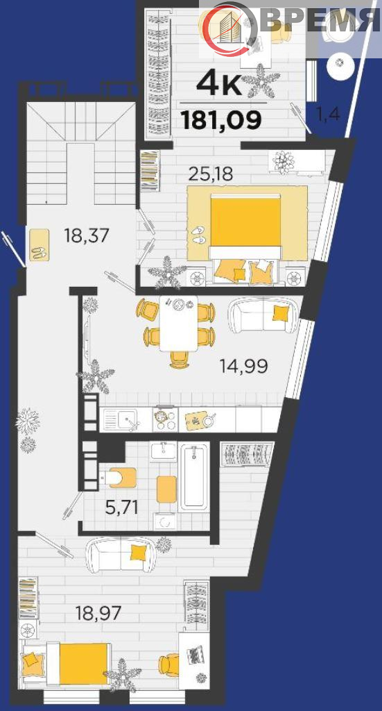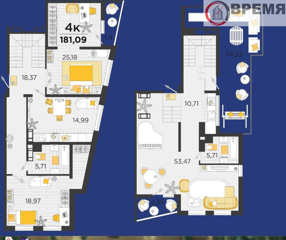 Продается 4-х комн. новостройка, 181 кв.м., 24/25 эт