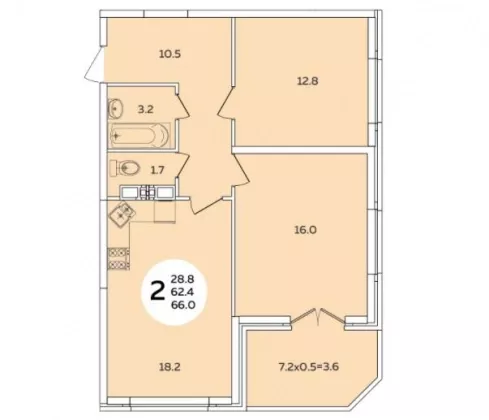 Продается 2-х комн. новостройка, 66 кв.м., 17/24 эт