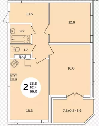 Продается 2-х комн. новостройка, 66 кв.м., 11/21 эт