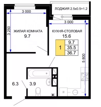В избранное однокомнатная квартира