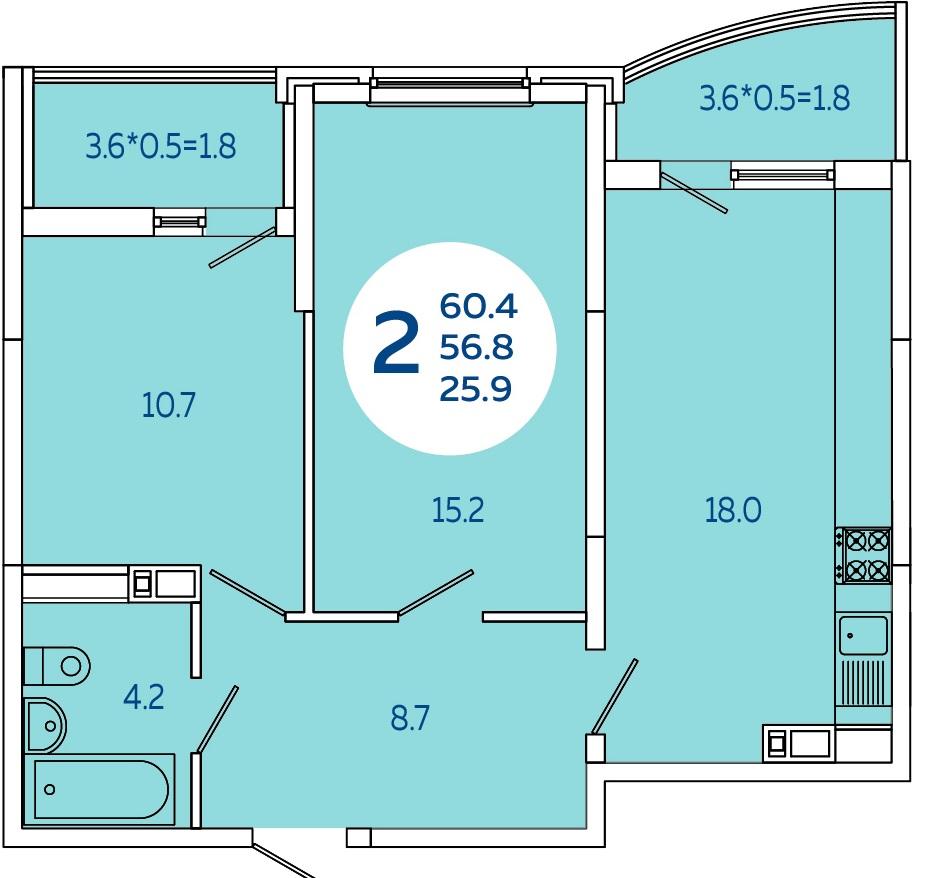 Продается 2-х комн. новостройка, 60 кв.м., 8/20 эт
