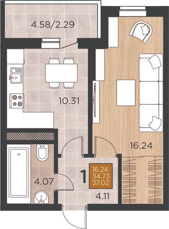 | Комнат в квартире | 1 |