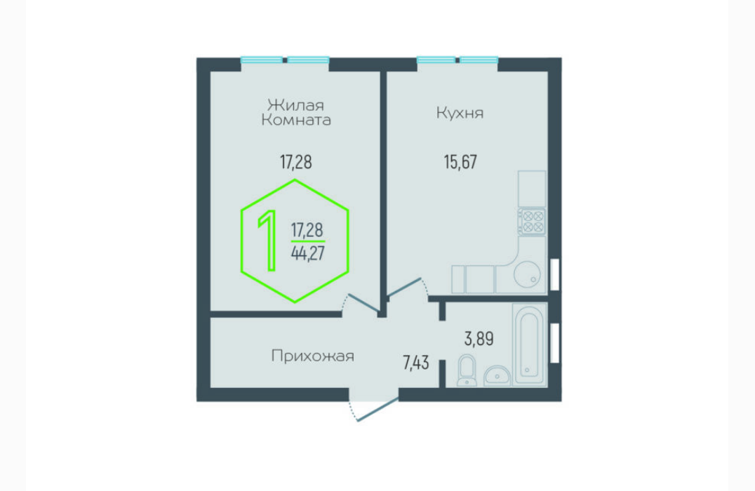 Продается однокомнатная новостройка, 44 кв.м., 2/3 эт