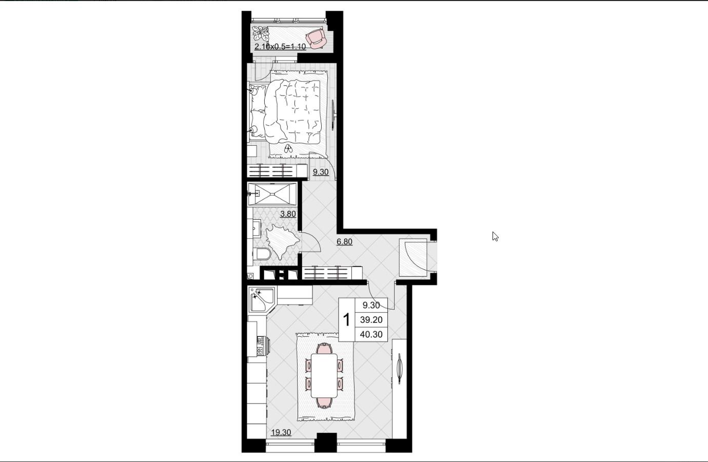 Продается однокомнатная новостройка, 42 кв.м., 5/9 эт