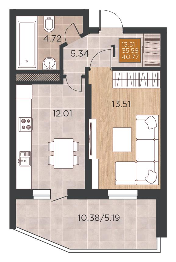 Продается однокомнатная новостройка, 42 кв.м., 3/16 эт