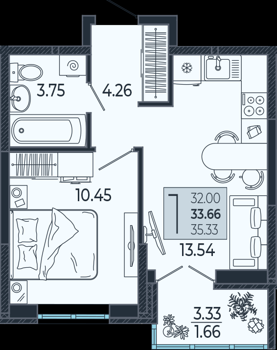Продается однокомнатная новостройка, 35 кв.м., 5/24 эт