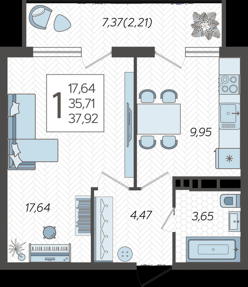 | Площадь, кв.м. | 42 |