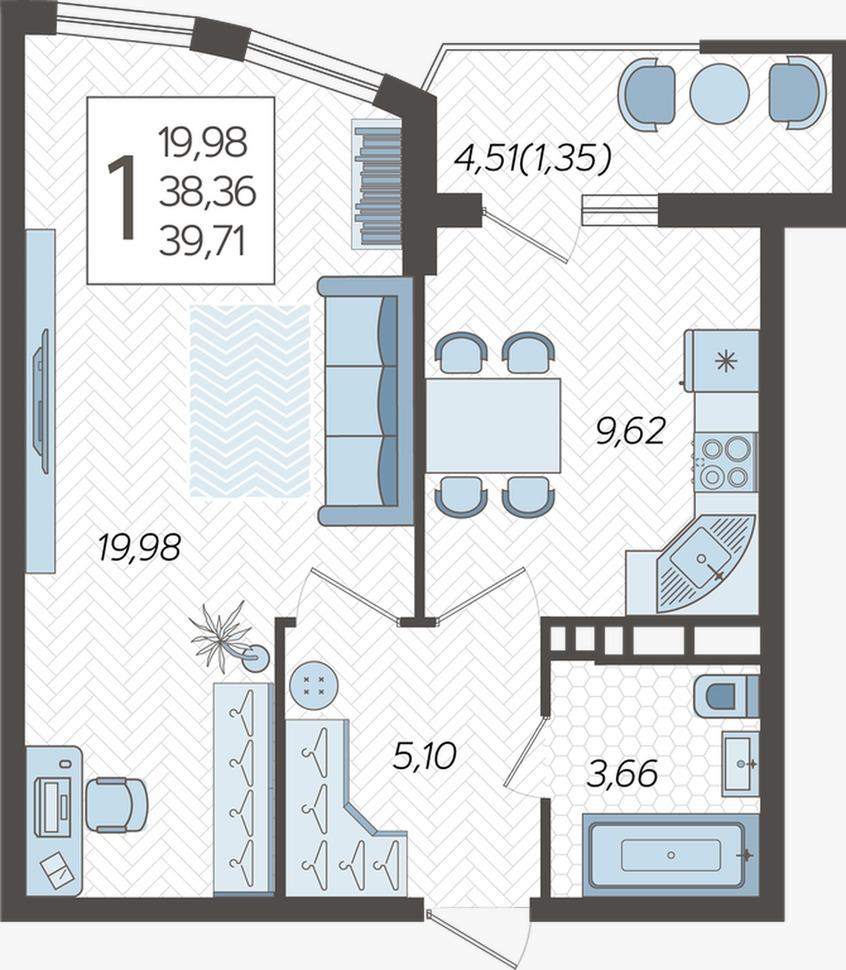 Продается однокомнатная новостройка, 41 кв.м., 7/16 эт