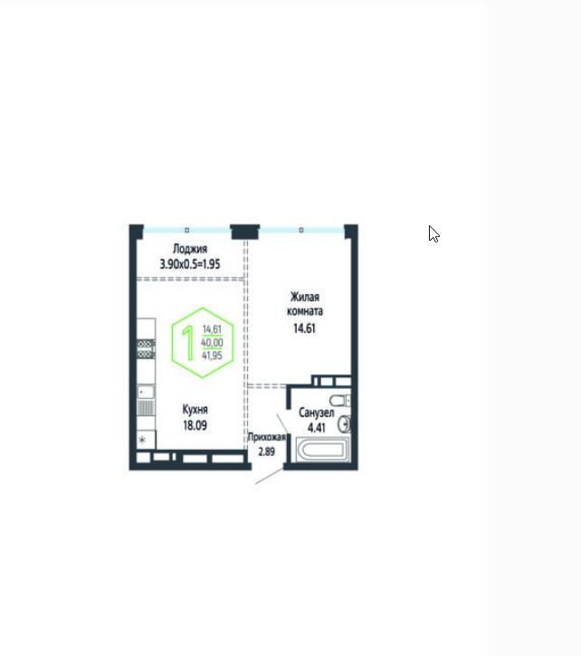 Продается однокомнатная новостройка, 44 кв.м., 5/21 эт