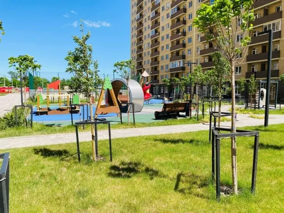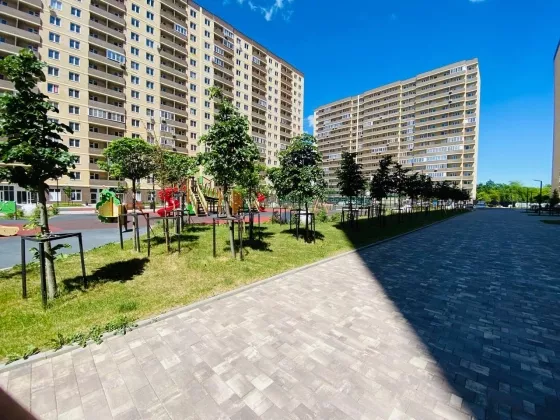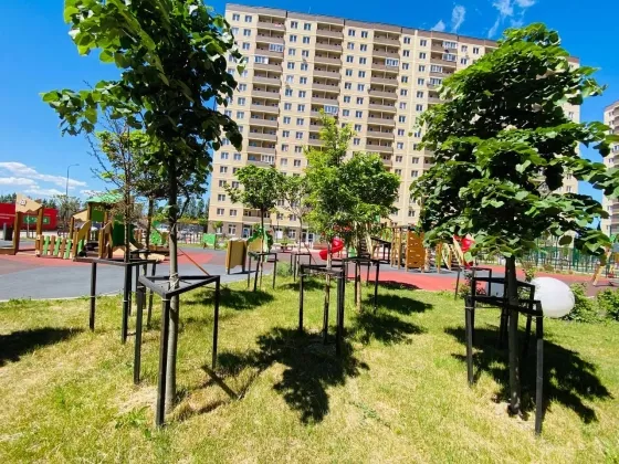 Продаётся уютная квартира в новом комплексе в спальном районе города, современная планировка с большими кухнями , красивая аллея ландшафтным дизайнером,