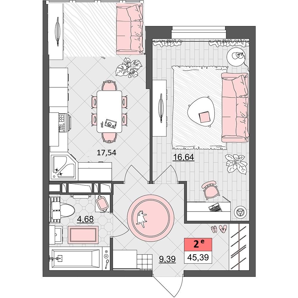 Продается однокомнатная новостройка, 44 кв.м., 10/19 эт